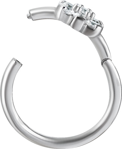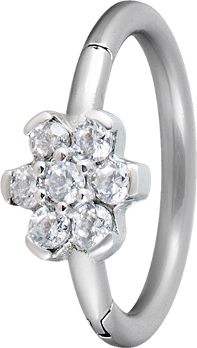 SS 316 FLOWER HINGED RING SET W. ZIRCONIA (SIDE FACING)