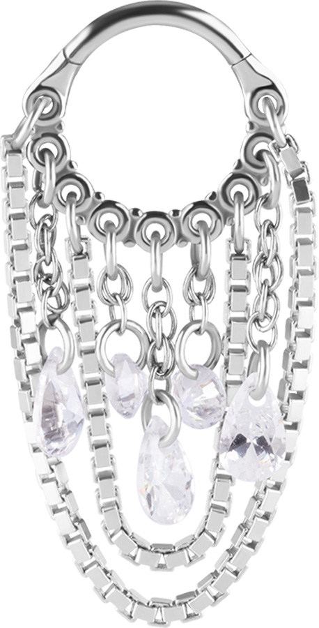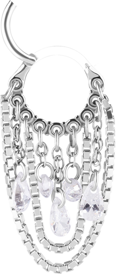 SS 316 HINGED RING WITH PEAR SHAPE AND ROUND STONE DANGLES 1,2x8mm WH